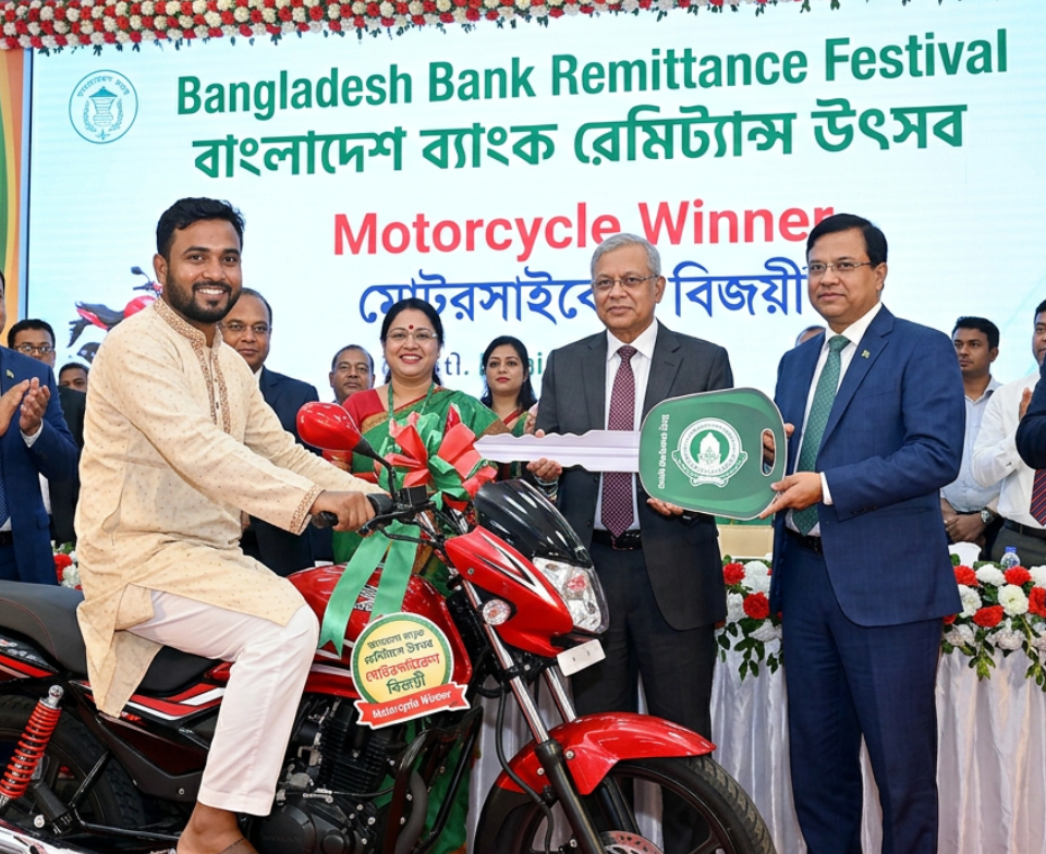 Renu Begum, a client of Islami Bank Bangladesh PLC’s Naria branch in Shariatpur, has become the latest winner of a brand new motorcycle in the bank’s ongoing Cash Remittance Festival, turning an everyday remittance into a life-changing prize for her family. She earned the reward after receiving money sent through Ria Money Transfer by her relative Masum Hossain, an expatriate living in Italy, who transferred Tk 85,300 to support loved ones back home, showing how the hard work of migrants can bring both essential income and special surprises. At a recent raffle draw held at Islami Bank Tower, senior leaders of the bank joined representatives from Ria Money Transfer to celebrate her win and highlight the campaign that is designed to encourage safe, formal channels for sending money into Bangladesh. Islami Bank additional managing director Md Altaf Hossain attended the event as chief guest, while senior vice-president Md Motahar Hossain Mollah, vice-president Mohammad Shahadat Hossain and Ria Money Transfer’s Bangladesh country manager Rashedul Islam Talukder were also present, reflecting the strong partnership between the bank and the global money transfer company. During the festival period, a total of 20 motorcycles are being given away through digital raffle draws among customers who receive cash remittances through Ria Money Transfer at Islami Bank branches, and each winner is chosen in a transparent process that adds excitement to every transaction. Along with the motorcycles, remittance recipients also receive small common gifts, making the experience more memorable even for those who do not win the top prize. For families like Renu Begum’s, the motorcycle can reduce travel time, cut transport costs, and create new income opportunities, such as taking goods to market or helping relatives reach work and school more easily. Bank officials say the campaign sends a clear message that using formal banking channels is safe, fast and rewarding, helping protect customers’ money and boosting the country’s foreign currency reserves at the same time. They also hope that stories like this will inspire more expatriate Bangladeshis around the world to use trusted money transfer services when they send their earnings home. The bank is using the campaign to promote its wider range of digital and branch services, reminding clients that they can track remittances, save securely and plan for future goals under one roof. As the Cash Remittance Festival continues until later in the month, many customers are following the draw results with interest, dreaming that their next remittance may bring not only financial support but also a new vehicle parked outside their homes, symbolising progress, mobility and a brighter future built on the strong ties between overseas workers and their families in Bangladesh. Local communities are welcoming the festive mood it creates.